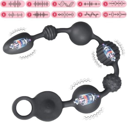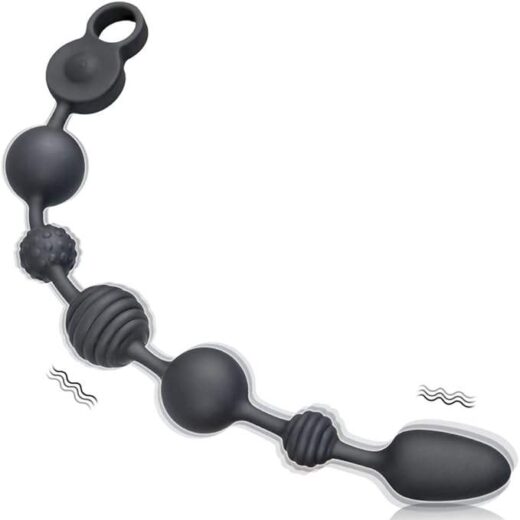 Soft Liquid Silicone Vibrating Anal Beads, SMAM Rechargeable Long & Flexible Vibrating Butt Plug Prostate Massager with 10 Vibration Modes, Anal Toy Anal Sex Toys for Men Women Couples