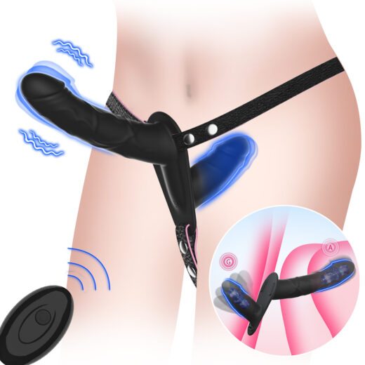 Women’s Remote Control USB Charging Double-Headed Silicone Leather Pants with 10-Frequency Vibration for Lesbian Couples Sex